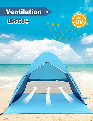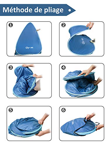 Specification: Glymnis Tente de Plage Pop-up Portable 2-3 Personnes Tente Anti UV UPF 50+ Ventilée avec Fermeture à Glissière de Porte pour Plage Comprend Un Sac de Transport