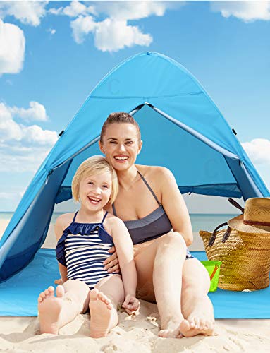 Glymnis Tente de Plage Pop-up Portable 2-3 Personnes Tente Anti UV UPF 50+ Ventilée avec Fermeture à Glissière de Porte pour Plage Comprend Un Sac de Transport