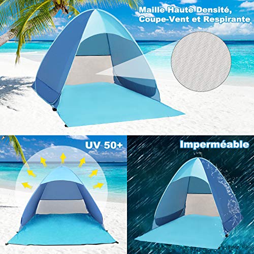【Protection Solaire】Matériaux de tente sont espécialement pour les activités de plein air. Notre tente de plage est fabriquée avec un tissu résistant à l’eau et anti-ultraviolet.Il protège votre peau et vous n’avez pas à vous soucier des coups de soleil.