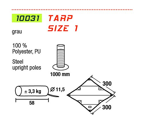 Voile d’ombrage Tarp 1. Voile d’ombrage avec coins renforcés. La toile enduite est multifonctionnelle et offre une bonne protection contre soleil et pluie. Tendu au-dessus de la tente, la voile protège la toile de tente et peut être utilisée comme auvent pour cuisiner ou pour chiller avec les copains. La livraison comprend un sac de rangement, haubans et piquets, mâts de relevé ainsi qu’ une notice de montage et d’entretien.