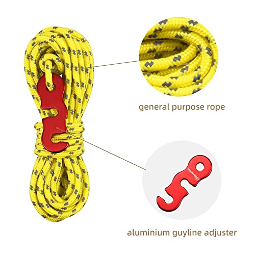 【Informations sur l’emballage】 La corde en nylon réfléchissante jaune a un diamètre de 3 mm. Chaque ensemble contient 4 cordes hauban et une seule corde mesure 4 m de long et est équipée d’une boucle de réglage.