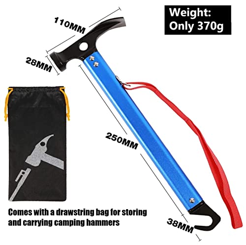 Specification: LATERN Marteau De Camping avec Crochet, 30cm Marteau De Tente en Aluminium Maillet De Camping en Plein Air Marteau De Piquet De Tente Multifonctionnel avec Sac De Rangement à Cordon (Bleu)