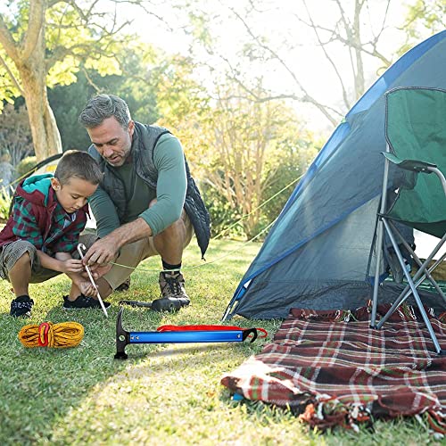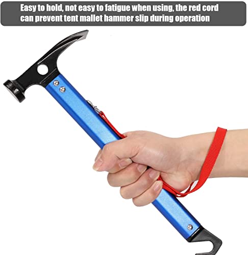 LATERN Marteau De Camping avec Crochet, 30cm Marteau De Tente en Aluminium Maillet De Camping en Plein Air Marteau De Piquet De Tente Multifonctionnel avec Sac De Rangement à Cordon (Bleu)
