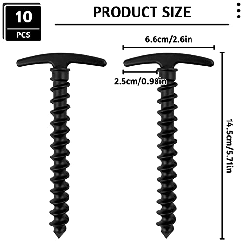 10 Pièces Piquets de Tente en Plastique Robustes Piquets à Visser de Camping pour Jardin Camping Voyage Extérieur 14.5 x 7 cm