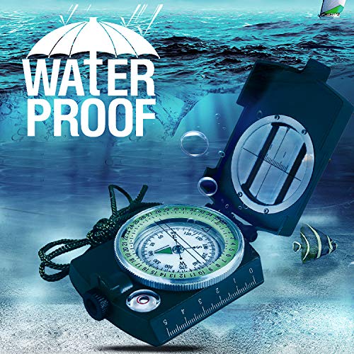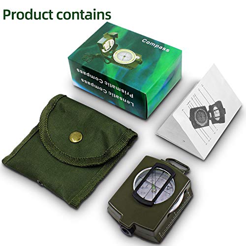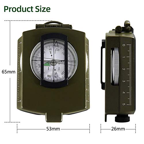 Specification: XCOZU Boussole Verte Multifonction Professionnelle – Visée, Militaire, Géologie, Camping, Randonnée – Étanche et Résistante Aux Vibrations Avec Poche