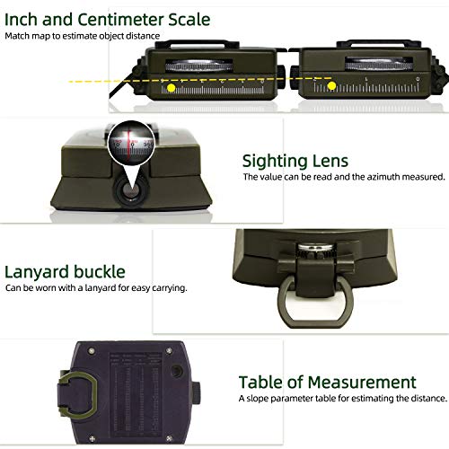 ♥ Fonction : la boussole est utilisée pour le positionnement de base, inclinomètre, échelle claire et précise pour mesurer la différence en hauteur, longueur et angle d’inclinaison. La boussole est livrée avec une pochette et un cordon qui peut être accroché autour de votre cou ou de votre poche.