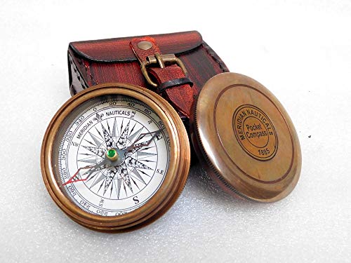 Specification: KHUMYAYAD Boussole de poche en laiton antique fabriquée à la main entièrement fonctionnelle avec étui en cuir