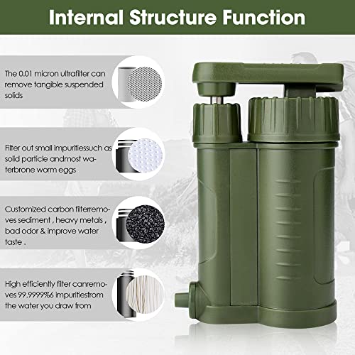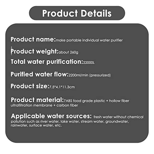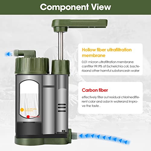 Specification: LQKYWNA Filtre Eau Survie, 2000L Extérieur Filtre à Eau Portable, Élimine 99,99% des Impuretés 0,01 μm Personnel Purificateur d’eau pour Urgences, Randonnée, Camping, Randonnée, Trekking