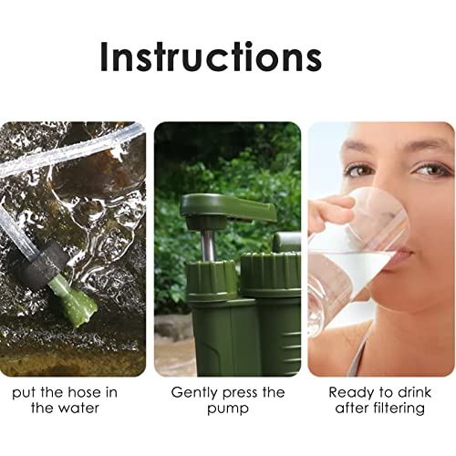【Débit rapide】 Le débit ultra rapide jusqu’à 1 200 ml par minute. Cette pompe à filtre à eau peut être utilisée directement à partir d’une source d’eau douce, pompée dans une bouteille d’eau vide, fournit au moins 2 000 litres (70 oz) d’eau potable propre et sûre provenant de ruisseaux et de lacs.