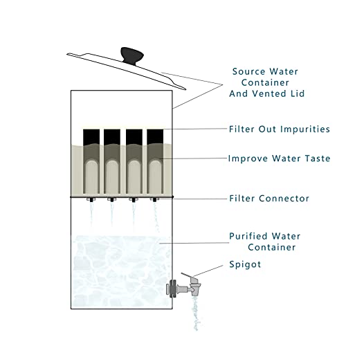 Specification: skrskr Seau de Filtration d’eau de système de Filtre à Eau par gravité pour la préparation aux urgences de randonnée à la Maison de Camping en Plein air