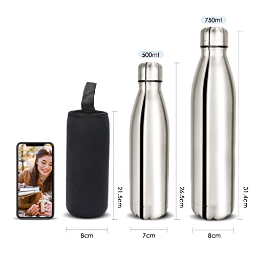 CMXING Thermosgourde Bouteille d’eau en 100% Acier Inoxydable Isolée Double Paroi-Bouteille Isotherme 500ml& 750ml Réutilisable sans BPA