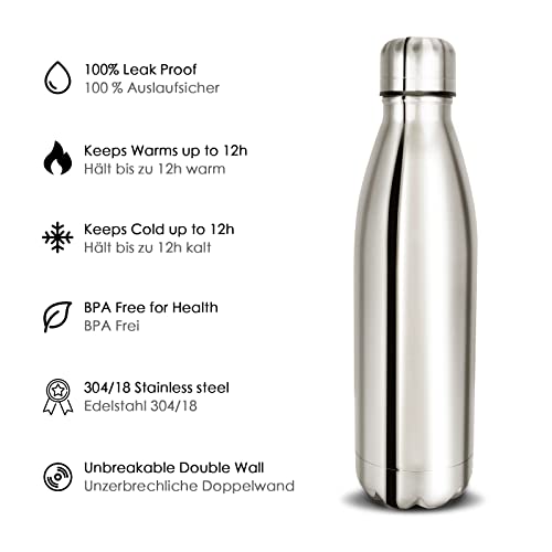 Specification: CMXING Thermosgourde Bouteille d’eau en 100% Acier Inoxydable Isolée Double Paroi-Bouteille Isotherme 500ml& 750ml Réutilisable sans BPA