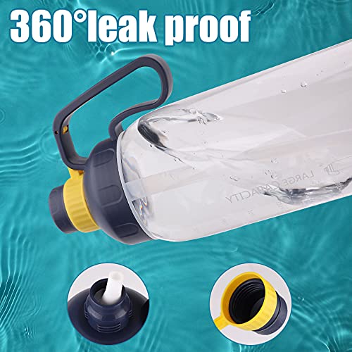 Bouteille d’eau de sport avec paille,1.8 L marqueur grande capacité cruche d’eau avec poignée,gourde de sport avec couvercle étanche sans BPA pour la randonnée en plein air,gym fitness,camping