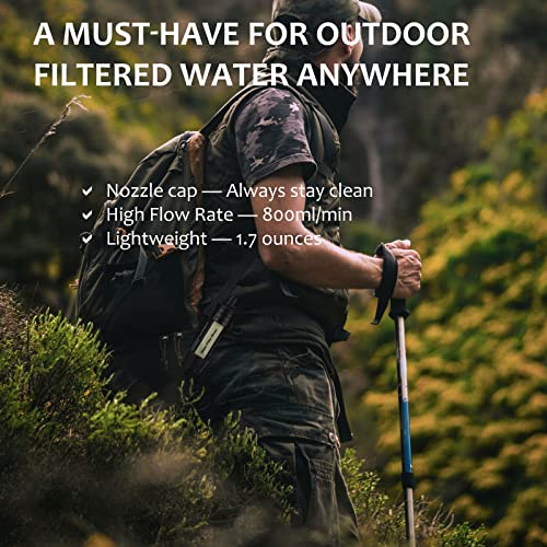 💧【Grande Capacité de Filtration】 Cet Filtre à Eau vous permet de filtrer jusqu’à 5,000 litres d’eau douce naturelle sans utiliser de produits chimiques, à un débit de 800ml/minute. Un Filtre à Eau = 5,000L d’eau propre, potable et portable dans votre sac à dos