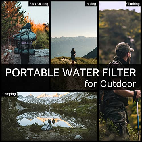 🌄【Utilisable en de Multiples Occasions】 Notre purificateur d’eau est parfait pour la randonnée en plein air, la randonnée, le camping, les voyages, la chasse, la pêche, le dépistage, la préparation aux situations d’urgence, etc.
