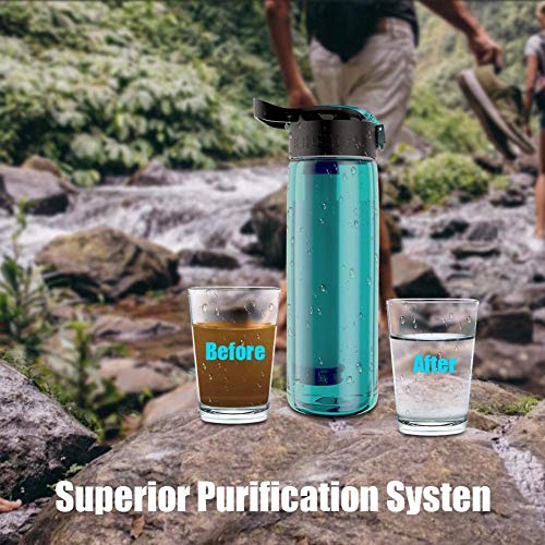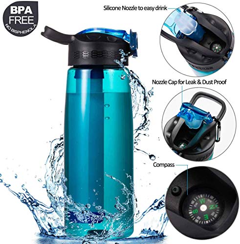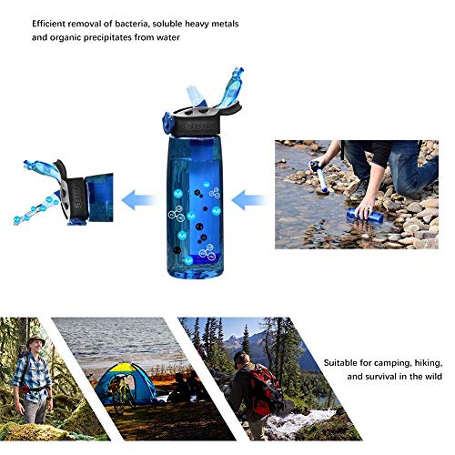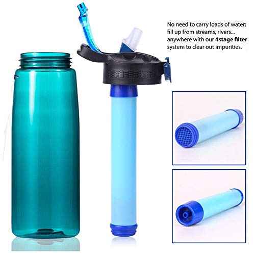 Specification: Qunlei Bouteille filtrante, purificateur d’eau d’urgence avec paille filtrante intégrée en 2 étapes pour voyage, camping, randonnée, randonnée, randonnée, sans BPA, 623,7 g menthe