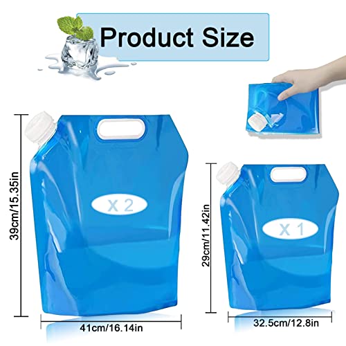 💦【Sac d’eau pliable】Inclure 3 bidons à eau pliables bleue PCS,2 tailles,2 * 10 L (15,1 x 16,3 1 / 38,5 x 41,5 cm) et 1 * 5 L (11,81 x 12,99 pouces / 30 x 33 cm),vous pouvez avoir deux tailles en même temps,idéal pour utiliser à différentes occasions.