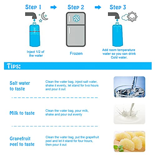 [Matériau sûr de qualité alimentaire]: Pas de bisphénol A, plastique PE de haute qualité, non toxique et de qualité alimentaire. La conception pliable économise de l’espace et peut stocker l’eau potable pendant une longue période sans affecter la qualité de l’eau et est facile à stocker.