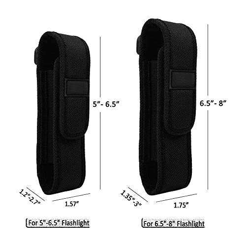 1>. Version améliorée, ont résolu le problème de couture. Construit en nylon durable. Un article comprend 2 étuis de lampe de poche, un pour lampe de poche 5 “-6,5”, un autre pour lampe de poche 6,5 “-8”.