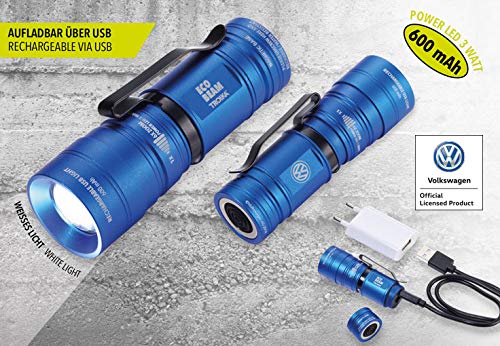Specification: TROIKA ECO BEAM – TOR52/VW – Lampe de poche – rechargeable via une prise USB – Official licensed by Volkswagen – DEL blanche – 2 niveaux d’intensité, lumière clignotante, zoom 6x – magnétique