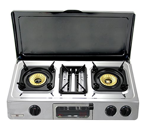 NJ G-87C Réchaud à gaz de camping – 3 Feux Plaque de Cuisson Portable Gril et Four Brûleur