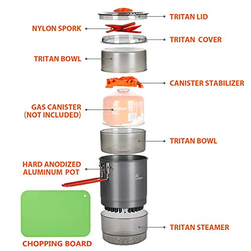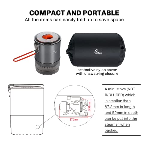 Specification: Fire-Maple Island Kit de Cuisson à la Vapeur, Ensemble de Cuisine d’Extérieur de Luxe Avec Panier Vapeur, Casseroles de Camping 10 Pièces, Ustensiles de Cuisine Essentiels pour Camping