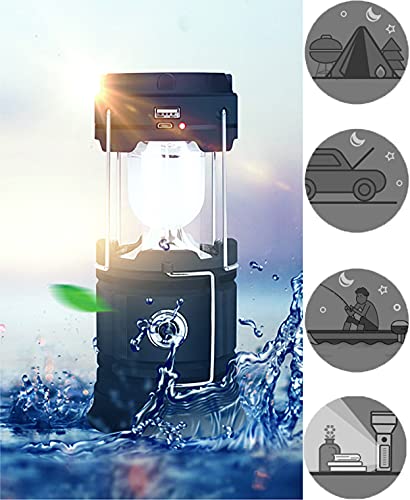 Specification: XVZ Lanterne de Camping Solaire Rechargeable, Lampe de poche portable – Rechargeable USB et micro port – Étanche IPX4 -pour Tente, Randonnée, Urgence, Coupures de Courant (noir)