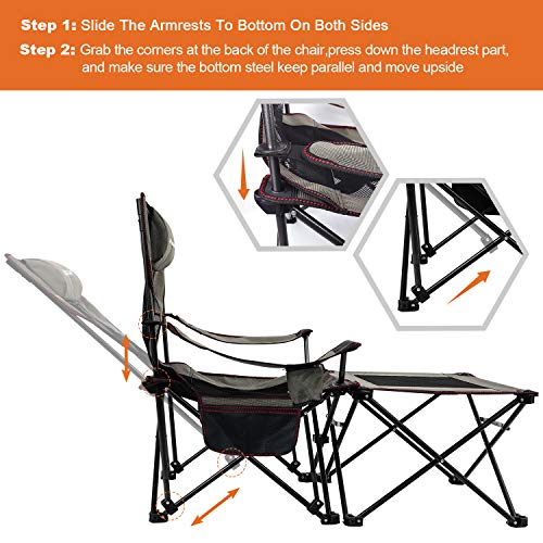 Facile à transporter et compact: chaise de camping inclinable facile à installer, un excellent compagnon pour le camping en plein air, les jeux de football, les concerts de musique, la pêche, les feux de joie, les fêtes sur la plage, les barbecues, les camping-cars, etc. Il est livré avec un sac de transport avec une sangle réglable pour un rangement et un transport faciles.