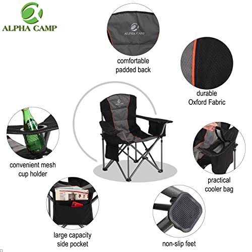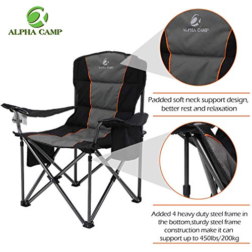 Specification: Chaise de Camping, Chaise de Camping Pliante, Grande Chaise de Camping Rembourrée avec Porte-gobelet et Sac isotherme – Noir