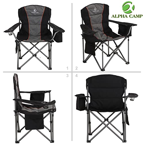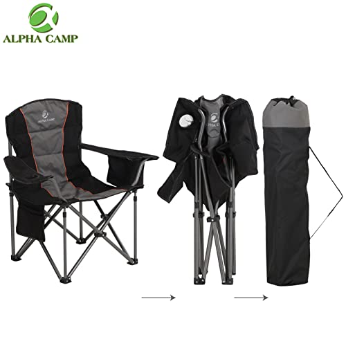 Chaise de Camping, Chaise de Camping Pliante, Grande Chaise de Camping Rembourrée avec Porte-gobelet et Sac isotherme – Noir