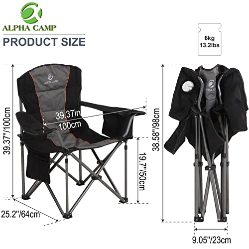 Grande taille : chaise de camping pliante surdimensionnée de 64 x 100 x 100 cm, poids de 6 kg. Grande surface d’assise avec tissu Oxford rembourré 600 x 300D et accoudoirs rembourrés pour plus de confort