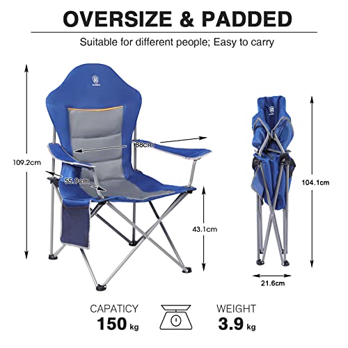 Specification: EVER ADVANCED Chaise Pliante Camping Portable Légère Dossier Haut avec Porte-gobelet et Sac de Transport de Jardin Pêche Bleu 60x56x109cm Bleu foncé