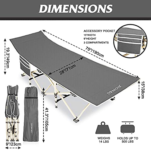 DRMOIS Lit de Camp Pliable – Charge maximale Statique : 260 kg – pour l’extérieur, Le Camping, Les Voyages, la Maison, etc.
