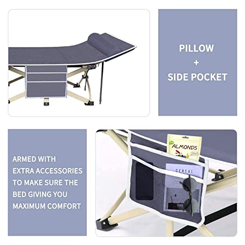 Camping lit Pliant lit de Camping pour Adultes Portable avec Oreiller, Poche latérale, Sac de Transport pour Plage BBQ randonnée Bureau