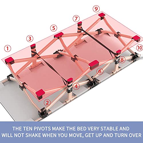 DURABLE ET SOLIDE : Grâce à sa conception innovante, le support en tube métallique plat peut supporter un poids maximal de 150 kg. Il est beaucoup plus robuste que le cadre traditionnel en tube rond. Les dix pivots rendent le lit très stable et ne trembleront pas lorsque vous bougez, vous levez et vous retournez.