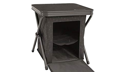 Ce meuble de rangement Cayon Cabinet Outwell est facile à monter. Ses étagères et sa plateforme vous permettront de bénéficier d’un espace important afin de ranger vos affaires. Ce meuble est donc indispensable pour aménager agréablement votre campement. Le dessus de table en stratifié n’est pas résistant aux intempéries et ne doit pas rester à l’extérieur en cas de risque de pluie. Caractéristiques : – Porte abattante robuste avec poignée permettant d’accéder aisément et sans bruit à l’espace de rangement, comme à la maison – Des aimants maintiennent la porte contre le meuble – Une étagère inférieure – Une étagère filet centrale – S‘ouvre et se replie en quelques secondes – Aucun montage requis – Charge max. : Étagère filet – 5 kg / Étagère en dur – 10 kg – Sac de transport pratique fourni, pour le rangement et le transport