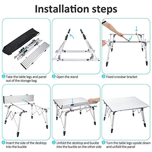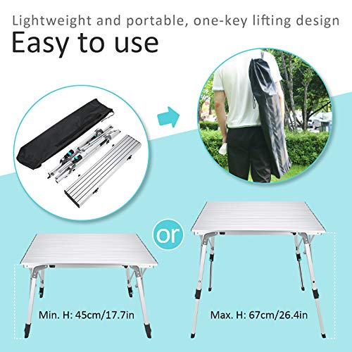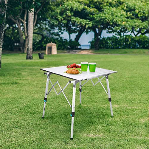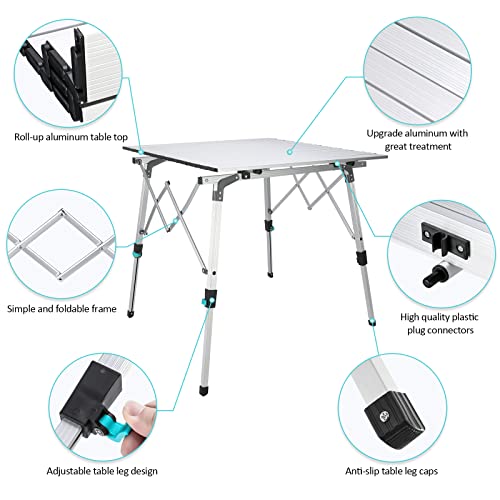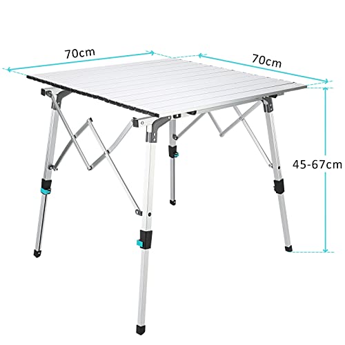 Specification: Synlyn Table Pliante Portable Table de Camping Aluminium Table de Jardin en Aluminium Table de Balcon réglable en Hauteur Table de Voyage pour Camping Pique-Nique Cuisine Randonnée – 70 x 70 cm