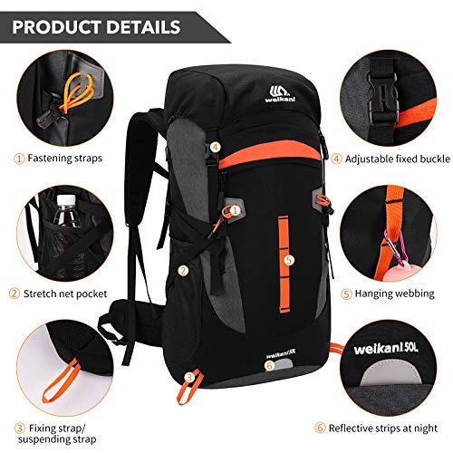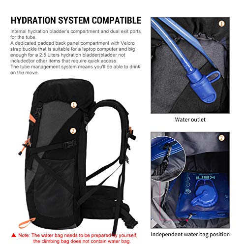 [50L grande capacité.] Le sac à dos de randonnée grande capacité est suffisant pour répondre à tous vos besoins. La grande poche principale et les multiples poches vous permettent de ranger tous vos essentiels. Il y a une poche spéciale pour le sac à eau dans le sac à dos. Le sac à dos a un trou pour le tuyau d’eau. Lorsque votre téléphone portable ou un autre appareil doit être chargé, vous pouvez retirer le câble de charge directement du trou pour le charger.