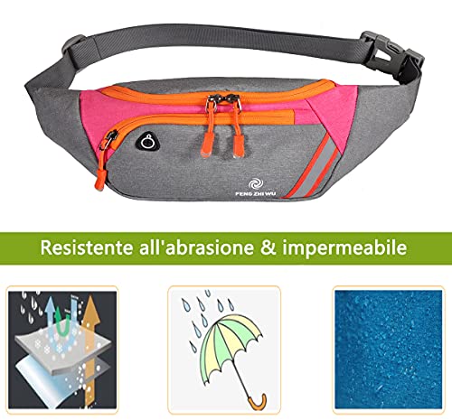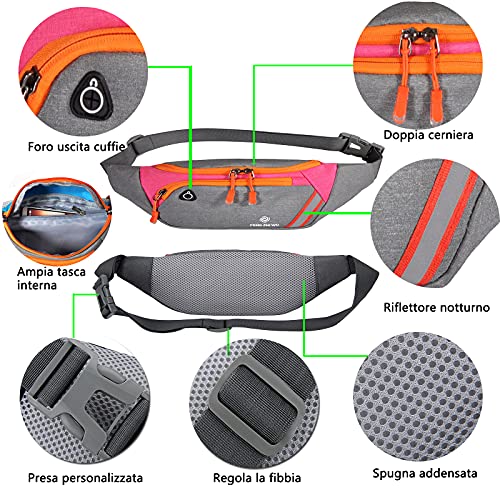Sac Banane Homme Femme Sac de Randonnée Prise Casque et Poches Ceinture réglable,Sacoche Banane Running imperméable réfléchissant, pour Loisir/Voyage/Sports/Randonnée/en Plein air