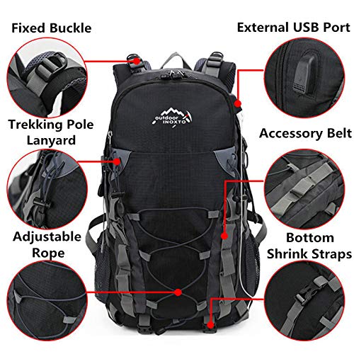 Specification: A AM SeaBlue Sacs De Trekking Voyage Grande Capacité Sacs à Dos De Randonnée pour Femme Homme Les en Plein Le Camping Alpinisme Outdoor Backpack USB Sac à Dos Multifonction Résistant à l’eau 40L Noir
