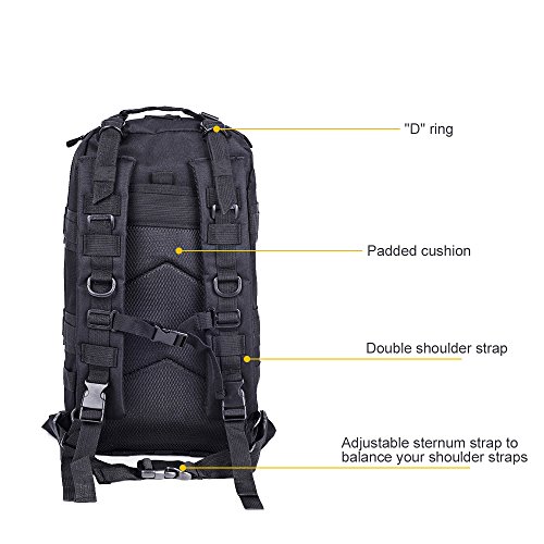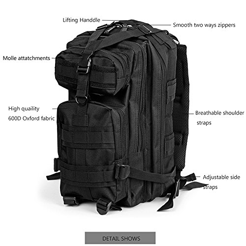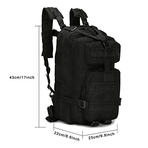 Specification: Sac à Dos de Trekking, Sacs de Trekking Sac à Dos Militaire Sac à Dos Armée 25L MOLLE Assaut Pack Sac à Dos de Combat Tactique pour La Randonnée en Plein Air Camping Trekking Pêche Chasse (Noir)