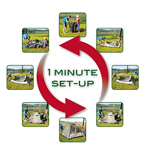 This instant dome tent from Coleman only requires 1 minute pitching and packing! It features a spider-like technology with pre-attached poles. Also, it has a strong and durable PE groundsheet. The tent includes windows with covers for a bright interior when needed. It is suitable for camping, festivals and general outdoor use. The tent includes windows with covers for a bright interior when needed. It is suitable for camping, festivals and general outdoor use. A fully integrated groundsheet and high-performance fabrics ensure you and your family enjoy clean, dry and bug-free camping. Set up The instant dome tent takes one minute to set up. Suitable for Camping, festivals and outdoor use. Waterproof fabric Classifies a hydrostatic head of 800mm as waterproof. Can hold up to 3/4 metre of water. Product Dimension The tent can sleep up to 5 people. The pack size is 105 x 19 x 19 cm and weighs 5.9kg. Customer Question and Answers Question 1: Can a front canopy to fit the instant dome 5No it can not. Question 2: How many does it sleepIt sleeps 5 people. Question 3: Does this tent have a removable bedroom divider, to divide the bedroom space into 2 if you want to Answer: It does not have a divider. Question 4: Is there mesh over the air holes to keep mosquitoes out Answer: Yes, all the air vents are mesh covered. Question 5: Does it have a mesh inner door so you can have door open in hot weather Answer: No it doesn’t. It only has two meshed vents in the roof.