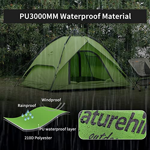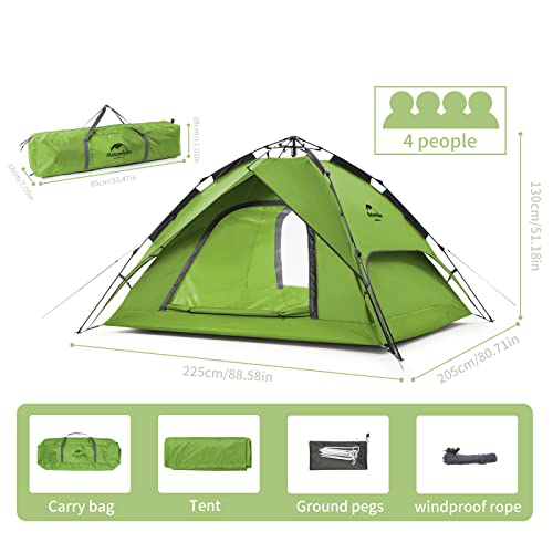 Naturehike Tente de Dôme pour 3 ou 4 Personnes Escamotable Automatique Portative Instantanées à Double étage pour Camping avec Sac de Transport (Vert Clair – 4P)