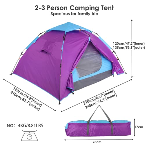 Specification: Tente de Camping, Tente Ultra Legere, Tente Dôme à Deux Couches Portable, pour 2-3 Personnes, Installation Facile, Imperméable, Anti UV, pour Camping, Pique-Nique, Randonnée