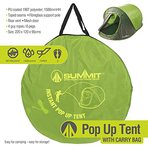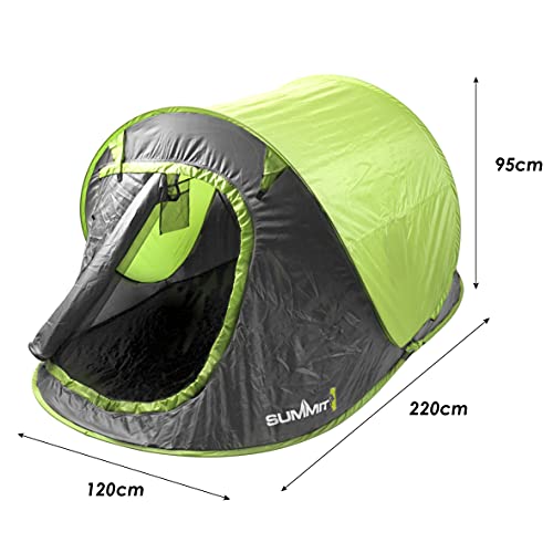 Tente pop-up pour deux personnes : ouvrez le sac, sortez-le et dépliez-le. Ensuite, lorsque vous avez terminé, il suffit de le décoller. C’est aussi facile. Dispose d’une porte extérieure zippée et d’une porte intérieure en maille pour la ventilation. Fait partie d’une grande gamme d’accessoires de camping faciles à utiliser et de tentes pop up pour adultes et enfants de Summit.