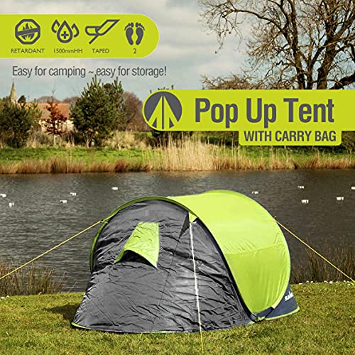 Une superbe tente pop-up pour 2 personnes avec une tête hydrostatique imperméable de 1500 mm et fabriquée à partir de matériau ignifuge. Il est également livré avec des coutures entièrement soudées pour plus de puissance de battement d’eau. Mais c’est aussi une tente pop-up, de sorte que vous vous tenez juste en arrière et regardez qu’elle se mettre en forme. Ensuite, fixez-le avec les chevilles et les haubans haute visibilité pour le fixer plus loin. Il peut être plié et emballé en moins d’une minute. Il est léger, idéal pour les festivals, la pêche et vous pouvez même le garder dans la voiture pour les nuits uniques. À l’intérieur, il y a deux poches en maille pour un rangement supplémentaire. En outre, il y a une porte extérieure zippée et une porte intérieure en maille pour une excellente ventilation. Il peut accueillir confortablement deux personnes et est parfait pour le camping sans tracas. Livré avec son propre sac de transport. Cette tente pop-up pour 2 personnes mesure 220 cm x 120 cm x 95 cm.