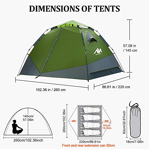 Specification: AYAMAYA Tente de camping pour 2 à 4 personnes, installation automatique hydraulique, tente facile à déployer, pour le camping familial, [2 styles] – Tente tunnel avec vestibule et chambre à coucher pour moto, vélo, camping