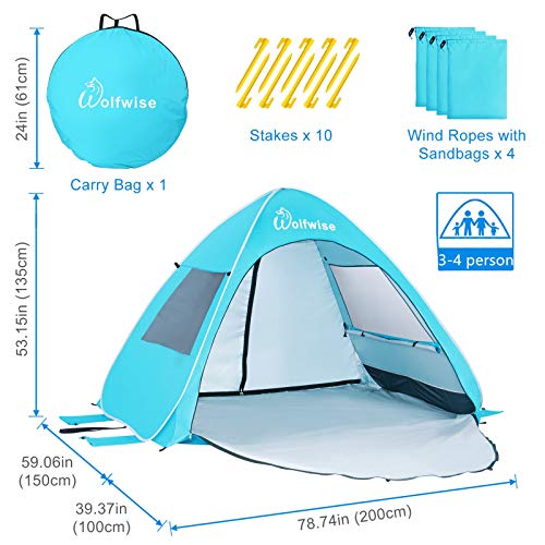 WolfWise Abris de Plage Pop Up Parasol de Plage UPF 50 Tente Instantanée en Plein air Portable pour Extérieur, Famille, Camping, Randonnée, Pêche