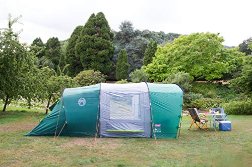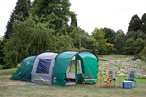 COLEMAN Rocky Mountain 5 Plus XL Tente familiale pour 5 Personnes Tente Tunnel, Deux Grandes cabines de Couchage obscurcies bloquent jusqu’à 99 pour cent de la lumière WS4500 mm, Vert, 74 x 32 x 32 cm