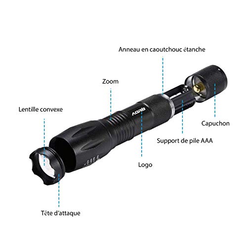 Specification: AGRIB Lampe torche LED Ultra puissante 1000 Lumens [Lot de 2] Lampe de poche – Zoom longue portée, 5 Modes, anti-Choc et étanche – Lampe Tactique pour bricolage et conditions extrêmes.